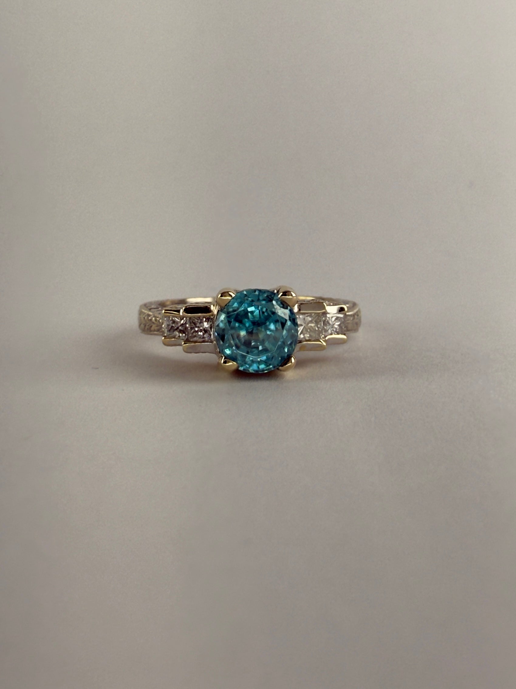 White and Yellow Gold Blue Zircon Diamond Ring